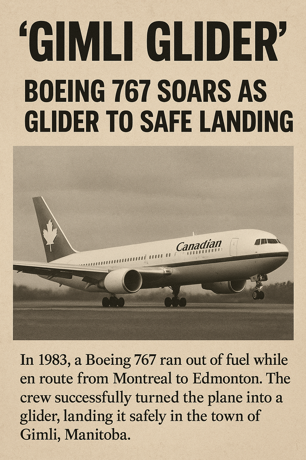 غيملي غلايدر هو الاسم الذي أُطلق على طائرة من طراز بوينغ 767 تابعة للخطوط الجوية الكندية، واجهت حادثة استثنائية في 23 يوليو عام 1983. أثناء الرحلة من مونتريال إلى إدمنتون، نفد الوقود من الطائرة على ارتفاع 12 ألف متر بسبب خطأ في حساب كمية الوقود بالوحدات المترية. أظهر الطيارون براعة نادرة عندما تمكنوا من تحويل الطائرة إلى طائرة شراعية وهبطوا بها بأمان في مطار مهجور بمدينة غيملي في مانيتوبا. لم تقع خسائر بشرية، وأصبحت الحادثة مثالًا يُدرَّس في تاريخ الطيران تحت اسم "معجزة غيملي غلايدر".