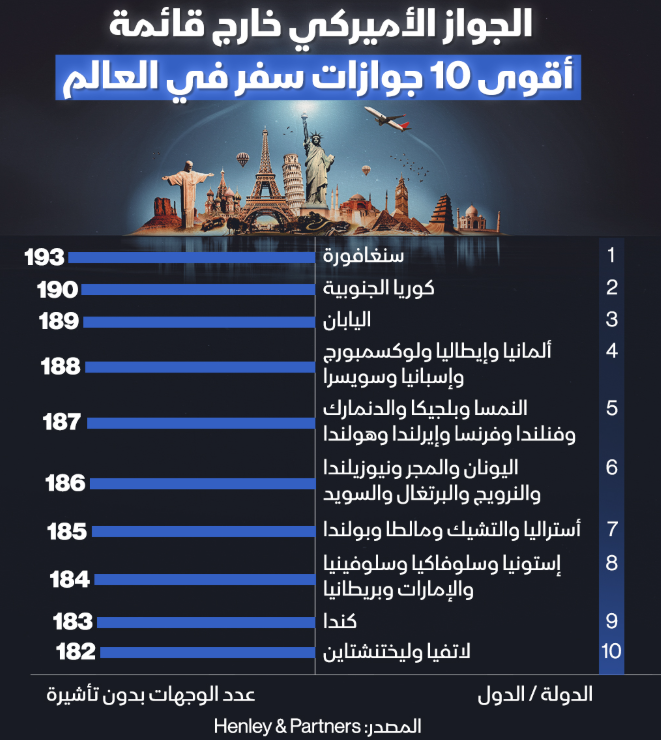 جاء في المركز الـ12 بالتساوي مع ماليزيا.. لأول مرة في التاريخ الجوازpassport الأميركي خارج قائمة أقوى 10 جوازات سفر في العالم.