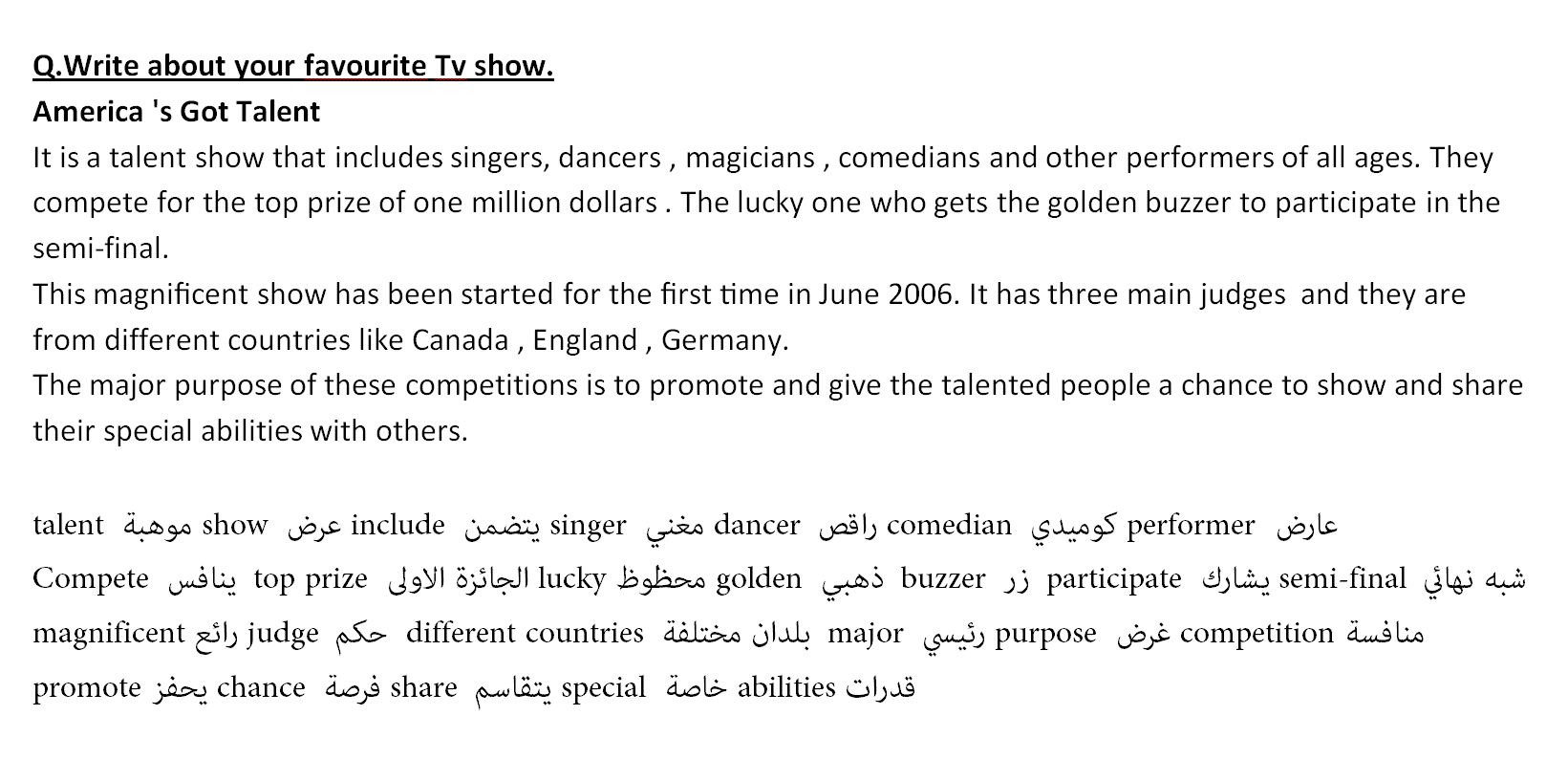 Q.Write about your favourite Tv show