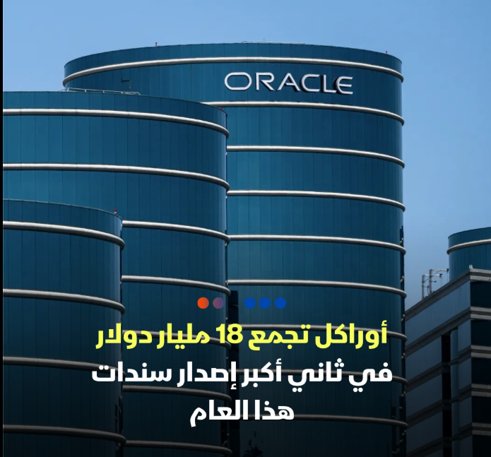- في خطوة لدعم خططها في الذكاء الاصطناعي والبنية التحتية السحابية، أتمت "أوراكل" إصدار سندات بقيمة 18 مليار دولار، وهو ثاني أكبر إصدار في السوق الأميركية لعام 2025.