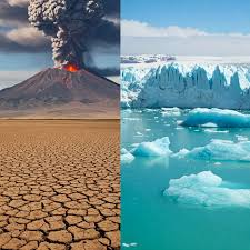 1ـ البراكين يؤثر الدخان والغازات المنبعثة من البراكين على الغلاف الجوي، مما يؤدي إلى زيادة درجة الحرارة.