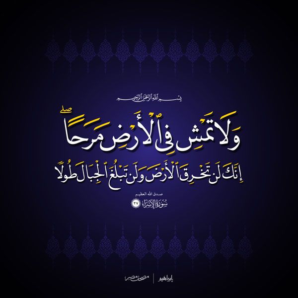 { إِنَّكَ لَنْ تَخْرِقَ الْأَرْضَ وَلَنْ تَبْلُغَ الْجِبَالَ طُولًا} هذا مثل ضربه الله تعالى قال إنك أيها الإنسان لن تشق الأرض من تحت قدمك بكبرك ولن تبلغ…