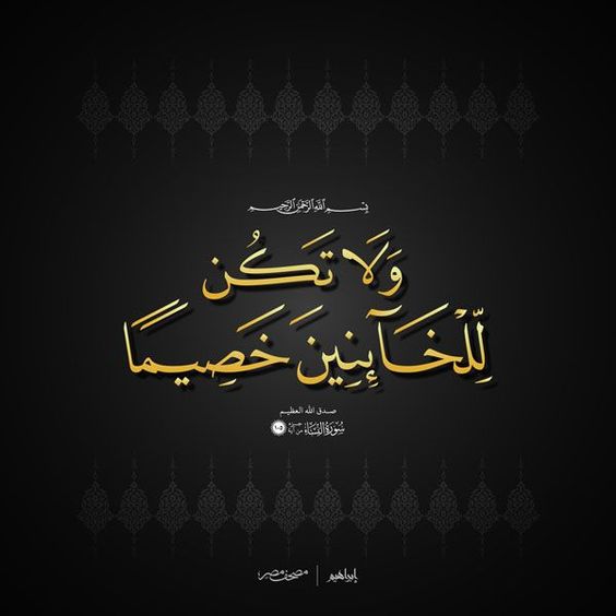 خاطب الله نبيه : يا محمد {بين الناس بما أراك الله} أي أعلمك الله في كتابه {ولا تكن للخائنين خصيما} نهاه أن يكون لمن خان مسلما ، أو معاهدا في نفسه ، أو ماله ، خصيما يدافع من طالبه عنه بحقه الذي خانه فيه ، ويخاصم .
