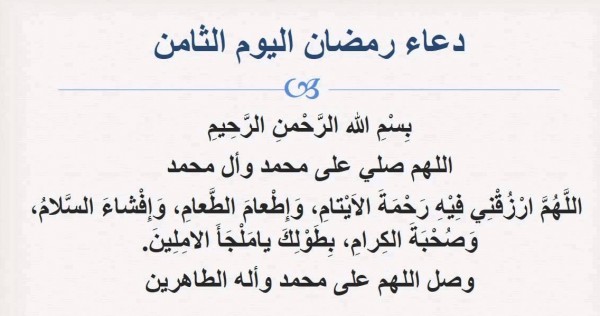 " اللَّهُمَّ قَوِّنِي فِيهِ عَلَى إِقَامَةِ أَمْرِكَ، وأذِقني فيهِ حلاوة ذكركَ ،وَ أَوْزِعْنِي لِأَدَاءِ شُكْرِكَ بِكَرَمِكَ، وَ احْفَظْنِي بِحِفْظِكَ وَ سِتْرِكَ يَا أَبْصَرَ النَّاظِرِينَ ".
