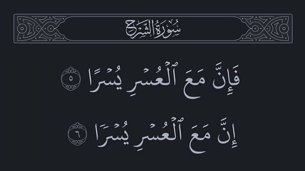 قال تعالى: {فَإِنَّ مَعَ الْعُسْرِ يُسْرًا * إِنَّ مَعَ الْعُسْرِ يُسْرًا} [الشرح: 5، 6].