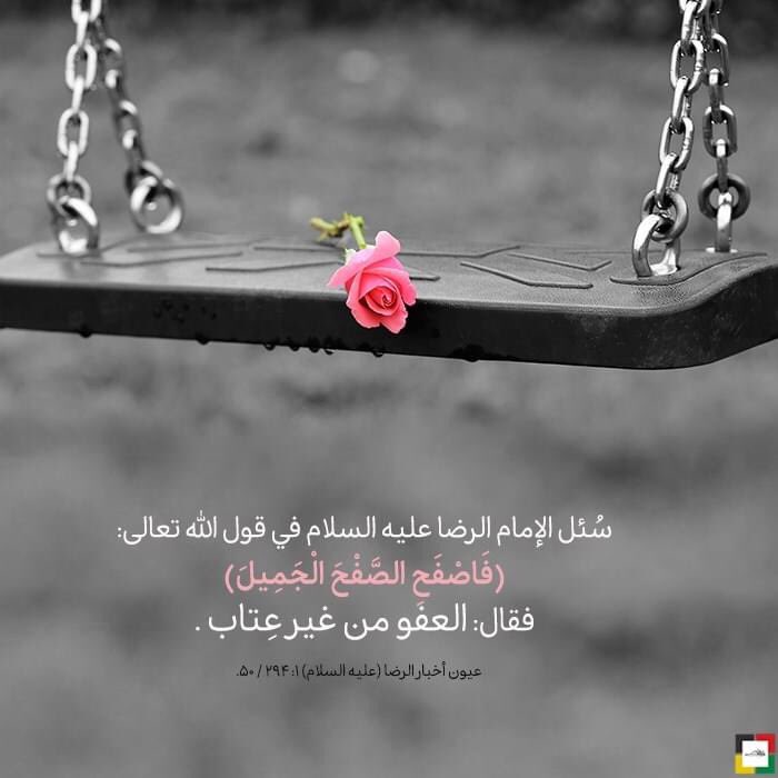 قال الرضا عليه السّلام في قول اللّه عزّ وجلّ فَاصْفَحِ الصَّفْحَ الْجَمِيلَ قال : « العفو من غير عتاب.