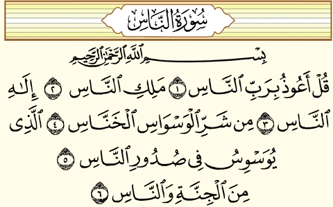 قال تعالى : { قُلْ أَعُوذُ بِرَبِّ النَّاسِ (1) مَلِكِ النَّاسِ (2) إِلَهِ النَّاسِ (3) مِنْ شَرِّ الْوَسْوَاسِ الْخَنَّاسِ (4) الَّذِي يُوَسْوِسُ فِي صُدُورِ النَّاسِ (5) مِنَ الْجِنَّةِ وَالنَّاسِ } [الناس : 1 - 6] .