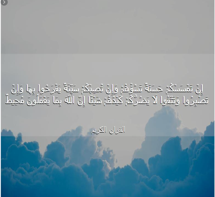 قوله تعالى : { إِنْ تَمْسَسْكُمْ حَسَنَةٌ تَسُؤْهُمْ وإِنْ تُصِبْكُمْ سَيِّئَةٌ يَفْرَحُوا بِها } . شأن كل عدو .. أقل خير يناله المسلمون يسيء عدوهم ، وذكر الإصابة في السيئة للإشعار بأنه كلما تمكنت السيئة من المسلمين ازداد عدوهم فرحا ، وهذا أبلغ تعبير عن شدة العداوة . { وإِنْ تَصْبِرُوا } على طاعة اللَّه ، وأذى أعدائه { وتتقوا } المحرمات والمعاصي { لا يَضُرُّكُمْ كَيْدُهُمْ شَيْئاً } . من كان مع اللَّه كان اللَّه معه.