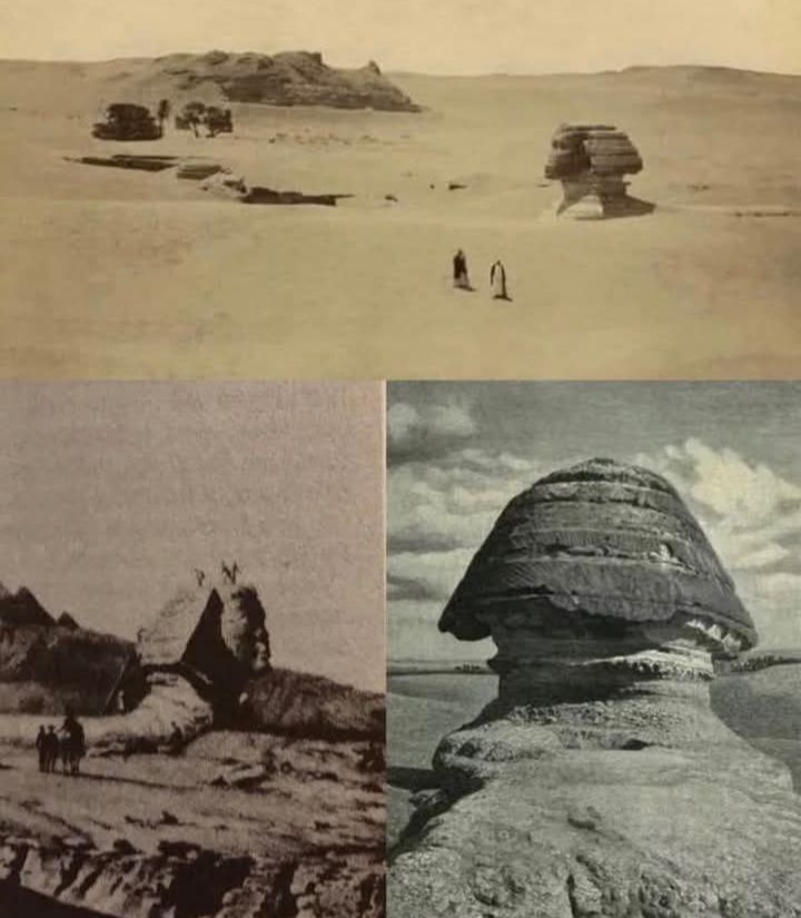 يقع أبو الهول في حالة منخفضة منخفضة على هضبة الجيزة، مما يعني أنه لقرون كان عرضة بشكل خاص للدفن تحت رمال الصحراء المتحركة. في الوقت الذي بدأ فيه المسافرون الأوروبيون بتوثيقها في العصور الوسطى وأوائل العصر الحديث، كان الرأس فقط مرئيًا، مع وجود جسم الأسد الهائل مخبأ تحت طبقات من الرمال.