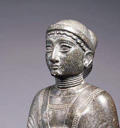 يحمل السجل التأريخي لنا عادات وتقاليد وثقافات كان أساسها واصلها هو العهد السومري ومن هذه العادات والتقاليد غطاء الرأس عند النساء السومريات ( الحجاب ) كما نسميه حيث فرض رسميا على نساء سومر لبس الحجاب ويؤكد ذلك التماثيل النسائية التي وصلتنا من العهد السومري كذلك الرسومات والاختام والمنحوتات واغلب ما ورد الينا فنيا كان يحمل حجاب المرأه وهنا في هذا التمثال نلاحظ جمال الحجاب وطريقة لبسه كذلك جودة النحت في تصويره بااجمل صوره ..