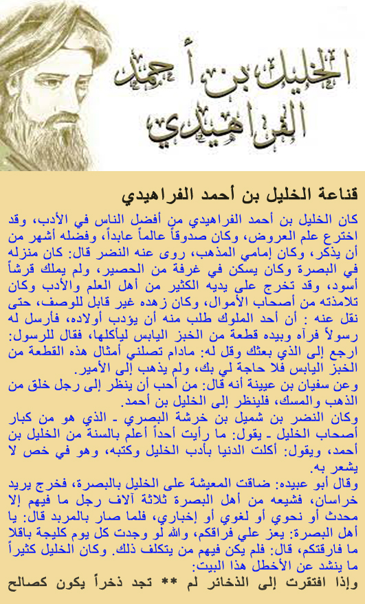 قناعة الخليل بن أحمد الفراهيدي ::