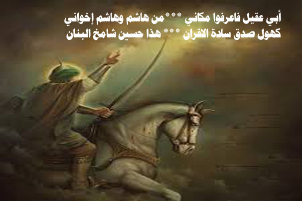 سلسلة أصحاب الامام الحسين(ع) يوم الطف// أبناء عقيل بن ابي طالب(رض)/عبدالله بن عقيل: عبد الله الاكبر بن عقيل بن ابي طالب،يكنى بأبي سعيد،امه:أم البنين وهي كلابية وقيل إنها أم أنيس،زوجته:ميمونة بنت أميرالمؤمنين (ع)، اولاده: محمد بن عبدالله بن عقيل (استشهد في كربلاء)،حضوره لكربلاء:حضركربلاءمع عمومته وابناء عمومته،رجزه يوم الطف:نزل عبد ألله ألأكبر إلى ساحة القتال وهو يرتجز:(خلوا عن المصحردون الغيل *خلوا عن الواضح من عقيل)(يمنع عن صريخة الرسول*بسيفه المهند المصقول)،قاتله:حمل عليه عثمان بن خالد الجهني)