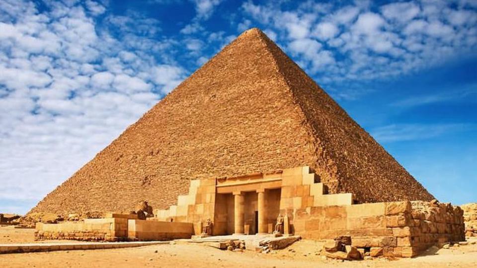هرم خوفو: هو الهرم الاكبر بين اهرامات مصرويعتبر احد عجائب العالم القديم يرتفع 146م تهدم جزء منه فأصبح ارتفاعه 127م يشغل مساحة قدرها 12 فدانا تقريبا واستعملت في بنائه نحو 2300000 كتلة من الحجر تراوحت زنة الواحدة منها بين الطنين والنصف والثلاثة أطنان وما هو أكثر قدر أن هذه الأحجار لو قطعت إلى قطع صغيرة حجم كل منها قدم مكعب ووضعت متلاصقة لأمكن أن تغطي خطا يبلغ طوله نحو ثلثي محيط الكرة الأرضية بني ما بين2480و2550 ق. م شيد الهرم كمقبرة لفرعون الأسرة المصرية الرابعة خوفو واستمر بنائه لفترة 20 عام.