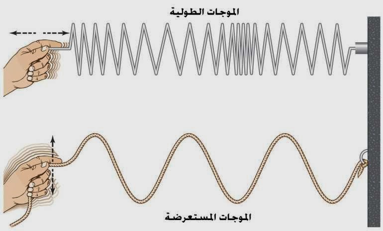 هناك نوعان من الموجات الميكانيكية اعتماداً على كيفية انتقال الجسيمات في الوسط، وهي الموجات الطولية والعرضية، وبشكلٍ عام يشكل اتجاه الحركة أو اضطراب الجسيمات في الموجات العرضية زاوية قائمة مع اتّجاه الأمواج، أما بالنسبة للموجات الطولية فيكون اتّجاه اضطراب الجسيمات بنفس اتّجاه انتقال الأمواج.