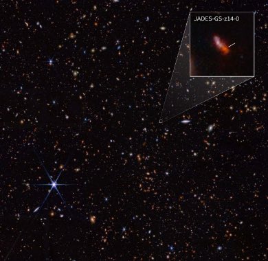 يُطلق عليها اسم JADES-GS-z14-0 وهوي لامعة للغاية في الكون المبكر حيث بدأت بعد أقل من 300 مليون عام من الانفجار العظيم . وقد تم تأكيد اكتشاف ثانٍ حديث أطلق عليه اسم JADES-GS-z14-1 على أنه بعيد تقريبًا.