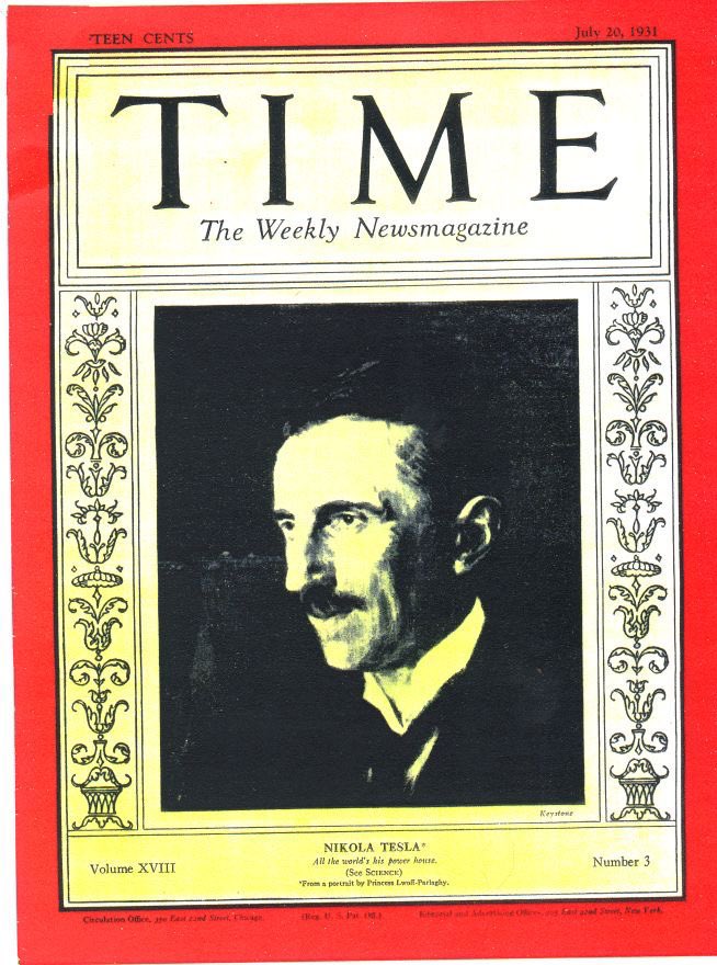 نيكولا تسلا على غلاف مجلة تايم، 20 يوليو 1931.