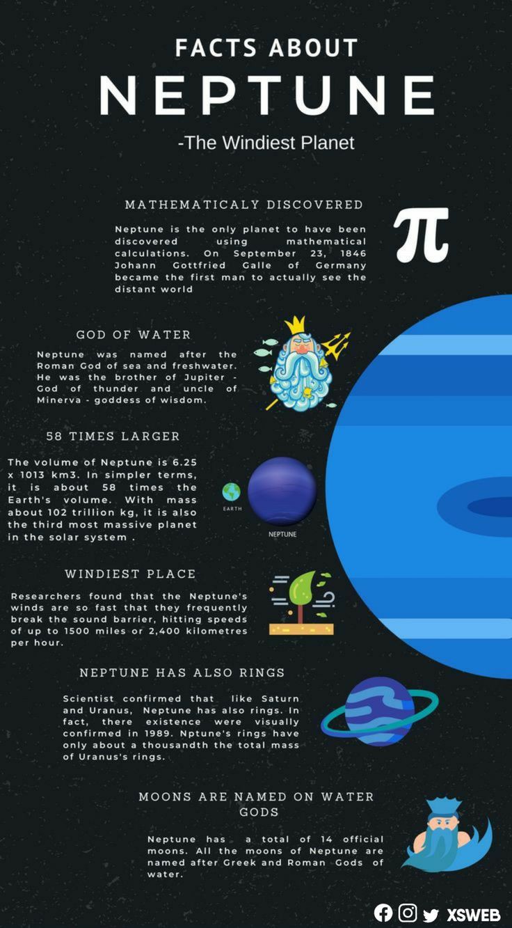 كوكب نبتون أكبر حجما من الأرض ب 58 مرة، وله حلقات كما زحل اورانوس.