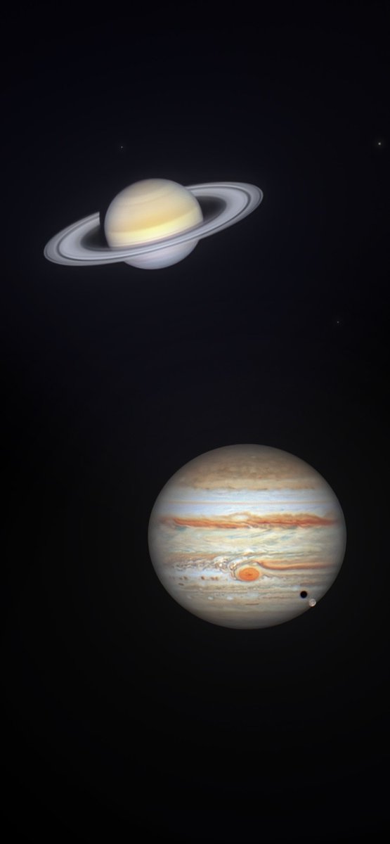 من ادق الصور لكوكبي المشتري وزحل ، تم التقاطها العام الماضي عندما كانا في اقرب مسافة من الأرض، التصوير باستخدام تلسكوب، من المنزل.