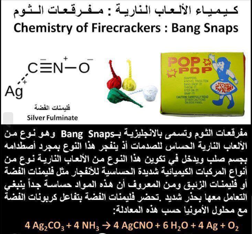 مفرقعات الثوم نوع من انواع الألعاب النارية الحساس للصدمات يدخل في تكوينه مركب فليمنات الفضة Silver fulminate