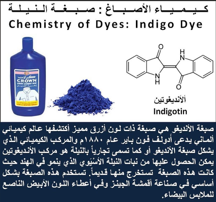 صبغة النيلة في الأساس مركب كيميائي وهو نبات هندي إستعمل من قديم الأزل لأغراض متعددة صناعية