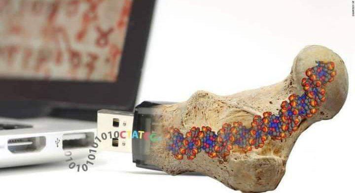 الحمض النووي للإنسان يوجد به المعلومات الوراثية لكل شخص. يعتقد العلماء أن غرام واحد من الحمض النووي البشري يستطيع تخزين كل البيانات الموجودة على فيسبوك وجوجل وأكثر، حيث يستطيع غرام من الحمض النووي البشري الاحتفاظ بمعلومات حجمها 455 إكسابايت (مليار جيجابايت). و يعتقد العلماء أن الحمض النووي قادر على تخزين البيانات لمليون سنة إذا حُفظ في ظروف معينة.