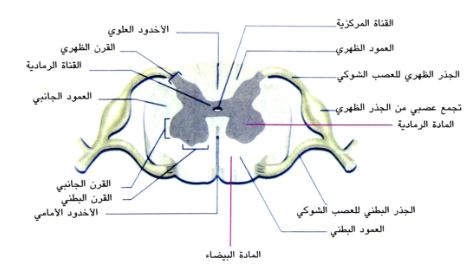 وهو الجزء المكمل للدماغ في تكوين الجهاز العصبي المركزي. يمتد من نهاية النخاع المستطيل وينتهي بالنقطة التي فيها تنتهي المنطقة القطنية وتبتدئ بالمنطقة العجزية من العمود الفقري، ثم يمتد بعد ذلك في شكل خيطي لينتهي بالفقرات الذيلية. يؤدي النخاع الشوكي وظيفته من خلال المادة الرمادية والمادة البيضاء والمسارات الصاعدة والنازلة .