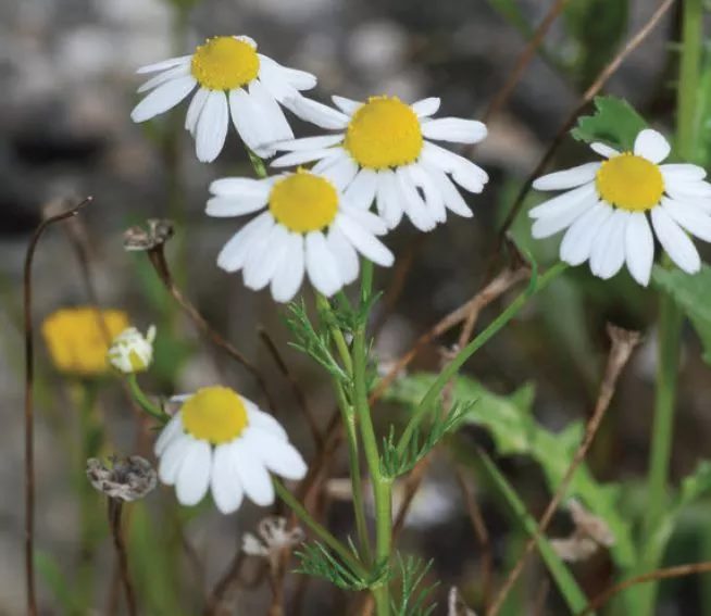 البابونج الحقيقي Matricaria recutita L : تتمتع الازهار والزيت الطيار بخواص مضاد التهاب ، حال لتشنج العضلات الملساء ، مساعد على شفاء الجروح والتقرحات الجلدية. مضاد للبكتيريا ومثبط لنموها ، منشط لتبادل المواد عبر الجلد. ويستعمل العقار داخليا لمعاجلة التشنجات الهضمية والامراض الالتهابية للجهاز الهضمي. كما يستعمل في علاج تخرش الاغشية المخاطية في الفم والحلق والبلعوم والطرق التنفسية العلوية ، ومعاجلة السعال ، والحمى والبرد ، والجروح والحروق.يستعمل البابونج موضعيا على شكل غراغر لمعاجلة التهاب اللثة .