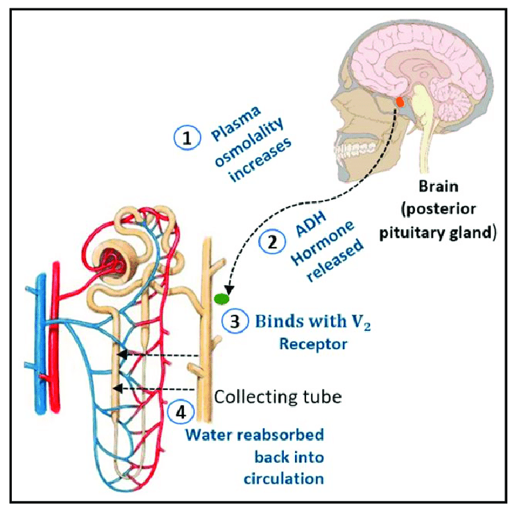 الهرمون المضاد لادرار البول Anti-diuretic Hormone , ADH هرمون بروتيني، يصنع في الخلايا العصبية من الجسم تحت السريري ويخزن في الفص الخلفي من الغدة النخامية إلى حين الحاجة إليه. يحتاج الجسم إلى هذا الهرمون عند تعرضه للجفالف او إلى النقص في مستوى الماء في الجسم او بسبب العطش او الإسهال او غيرها.