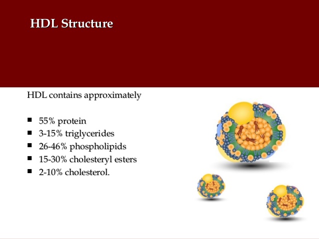 البروتينات الدهنية عالية الكثافة ( HDL- High Density Lipoproteins) يعتبر HDL من مشتقات البروتينات الدهنية ويسمى أيضا البروتينات الدهنية من نوع الفا (a- Lipoproteins) ويحتوي على 25 % - 45 % من الكوليسترول بالإضافة الى الدهون الفوسفاتية . يحمل HDL الكوليسترول من الدم الى الكبد حيث يتم ايضه واستخراجه من العصارة الصفراوية وهذا يعني ان زيادة نسبة HDL في الدم تؤدي الى نقص مستوى الكوليسترول في الدم مما يمنع حدوث مرض تصلب الشرايين وهذا ما يسمى أحيانا الكوليسترول الجيد او الحميد .