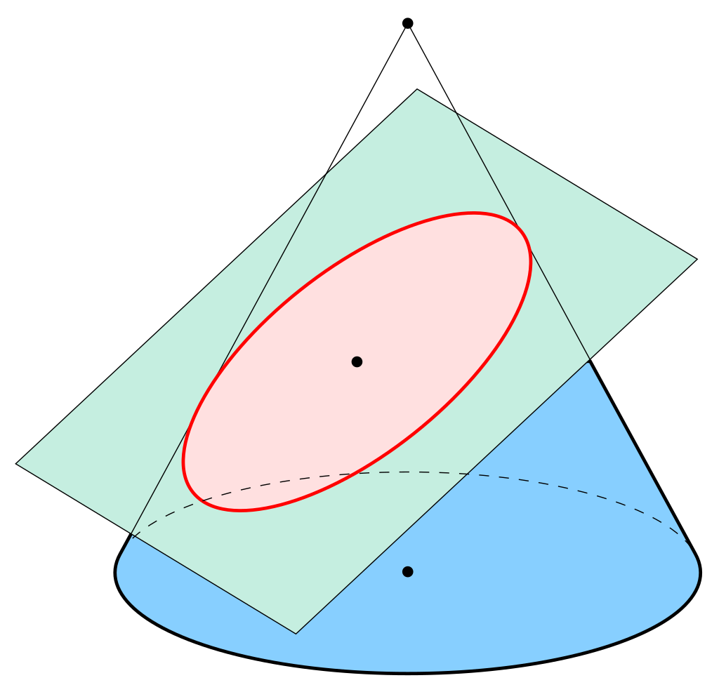 القطع الناقص أو الإهْلِيلَج (Ellipse)‏ هو المنحني المستوي الذي يحقق الخاصية التالية: مجموع بُعد أي نقطة على هذا المنحنى عن نقطتين ثابتين داخله (تسميان البؤرتان) يبقى ثابتا. البؤرتان هما النقطتان F1 و F2 في الشكل. أي يمكن رسم القطع الناقص بواسطة خيط مثبت من طرفيه في نقطتين f1 , f2 ورسم القطع الناقص بالقلم حولهما انطلاقا من النقطة x .