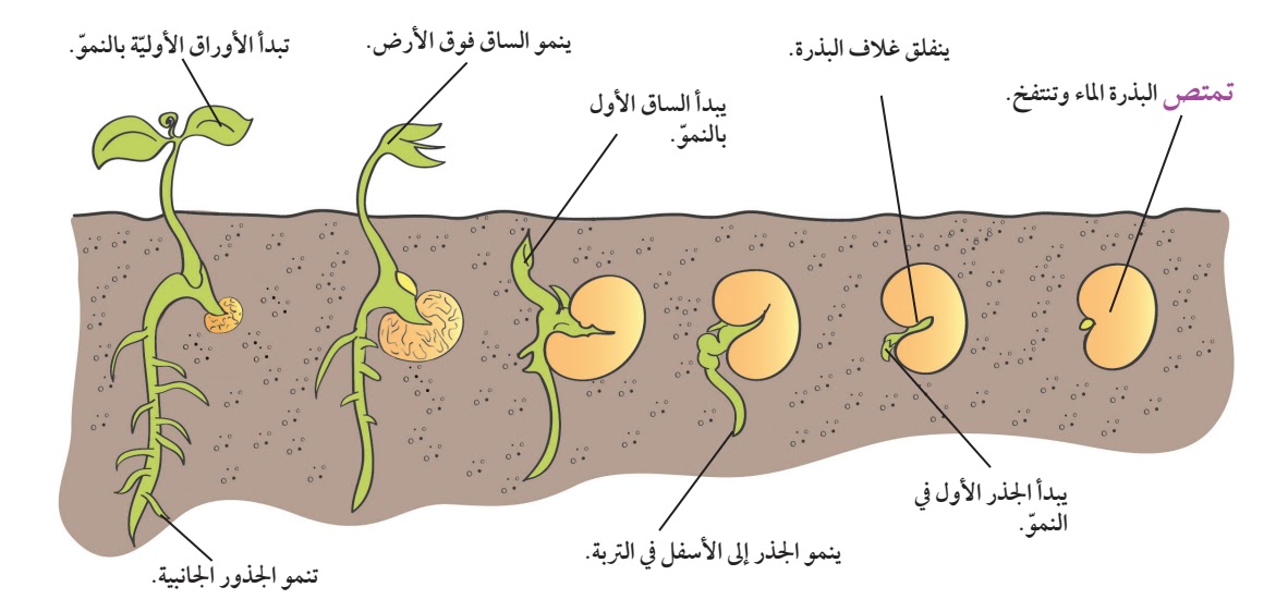 يكون الجنين في البذرة في حالة سكون وإذا توفرت له الشروط المناسبة فانه ينمو مكونا نباتا جديدا. وفي اثناء الانبات يعتمد الجنين علي الغذاء المخزون في الفلقات او الإندوسبرم، حتى تتكون له أوراق عندها يستطيع القيام بعملية البناء الضوئي، ويعتمد على نفسه في تكوين غذائه.