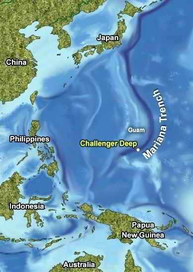 خندق ماريانا: أعمق نقطة على سطح الكوكب مع عمق يصل إلى 11.03 كيلو متر تحت مستوى سطح البحر، وتقع في غرب المحيط الهادئ، يبلغ طول الخندق حوالي 2550 كيلومتر ويبلغ عرضه 69 كيلومترا وهو مستطيل الشكل.