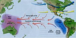 النينو: ظاهرة مناخية طبيعية تحدث كل ثلاث سنوات تشهدها مياه المحيط الهادئ، حيث ترتفع درجة حرارة مياه المحيط بحوالي نصف درجة مئوية، وهذا يؤدي إلى ارتفاع درجة حرارة الهواء الملامس لتلك المياه. لذا تتجه مياه المحيط الهادئ من خلال تيارات مائية من سواحل قارة أوقيانوسيا (أستراليا والجزر التابعة لها) نحو السواحل الغربية لقارة أمريكا الجنوبية، وتمتد هذه الظاهرة لبقية المحيطات القريبة من خط الاستواء والمنطقة المدارية. وتتسبب في تغيرات بيئية واقتصادية ومناخية، تتمثل في الجفاف والفيضانات.