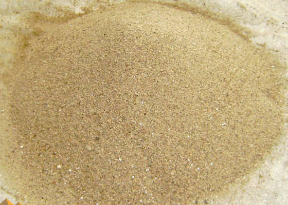 يتواجد هذا النوع عند بشكلٍ طبيعي ويتميّز بلونه البني الفاتح وملمسه الخشن لاحتوائه على ترسّبات طينيّة كبيرة الحجم، ويسمّى أيضًا بالرمل الخرساني ويستعمل في بناء البيوت الصغيرة في أماكن توفره، كما يستعمل كنوعٍ أساسي في أعمال بناء الخرسانات.