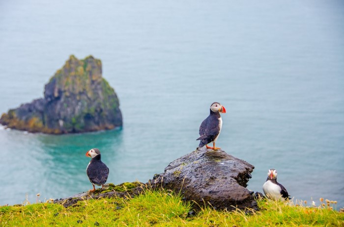 طائر البفن الجميل : يوجد هذا الطائر في جزرالفارو الدنماركية بحوالى 2 مليون زوج من هذه الطيور بالإضافة إلى انواع مختلفة من الطيور وكلا منها له أماكن محببة فى المنحدرات الصخرية فستجد طائر البفن البحرى موجود بالأماكن المرتفعة أما طائر الغلموت والنورس ففى الأماكن الأقل إرتفاعا ،حيث تعتبر هذه الطيور احد المعالم التي تعطي جمالا للطبيعة.