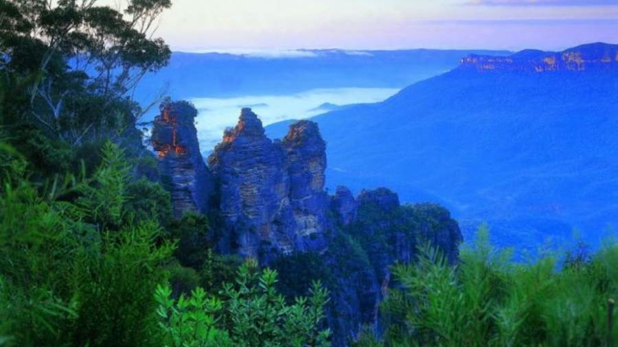 وهي عبارة عن سلسلة جبلية تفصل بين المنطقة الساحلية لسيدني وبين السهول الغربية، وهي موطن غابات الأوكاليبتوس المذهلة،حيث يصل ارتفاع قمم الجبال الزرقاء حوالي 1111 مترًا وتقع تحديدًا في منطقة نيو ساوث ويلز على بعد 100 كيلومتر غربي سيدني، ويعود سبب تسمية الجبال بهذا الاسم إلى وجود ضباب كثيف يغطي تلك المنطقة باللون الأزرق، نتيجة للزيت المنبعث من شجر الأوكاليبتوس.وتتكون منطقة الجبال الزرقاء من مسطحات كليسية ووديان ومنحدرات وعرة، وتصل مساحتها 1.03 مليون هكتار.