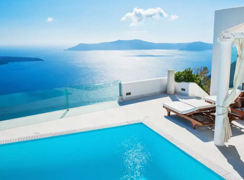 تعد واحدة من أجمل جزر العالم وتجذب المشاهير والسياح من كل مكان ، تتميز بمناظرها الخلابة وشواطئها الجميلة وأنشطة المياه المختلفة مثل الغوص والتزلج على الماء والتجديف، تضم الجزيرة العديد من المعالم السياحية، مثل موقع أكروتيري الأثري ومدينة ثيرا القديمة وطواحين الهواء، بالإضافة إلى الفنادق والمنتجعات والمطاعم الفاخرة التي يقصدها السواح.