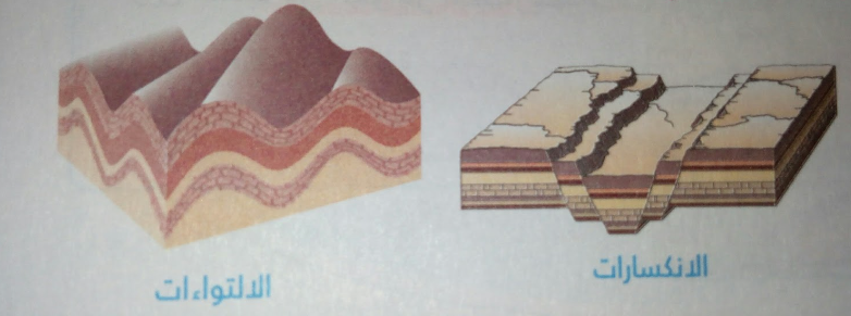 الانكسارات الارضية: وتعني حدوث كسر في الطبقات الصخرية نتيجة عملية الضغط والشد التي تتعرض لها، يصحبها تحرك بعض أجزاء الطبقات رأسيا أو أفقيا. وتنتشر الانكسارات الارضية في أماكن عديدة من العالم، وهي شواهد جيولوجية تدل على أن مناطقها قد تعرضت عبر الأزمنة الماضية من عمر الأرض لحركات باطنية. وتأخذ أثار الانكسارات أشكال مختلفة، ينتج عنها ظاهرات جيولوجية وجغرافية متعددة، وهي: ارتفاع مناطق من سطح الأرض وانخفاض مناطق أخرى، ونشوء الاخاديد والصدوع الأرضية بأنواعها.