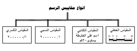 مقياس رسم الخريطة: هو العلاقة بين وحدة مسافة على الخريطة وما يقابلها من مسافة على الأرض.