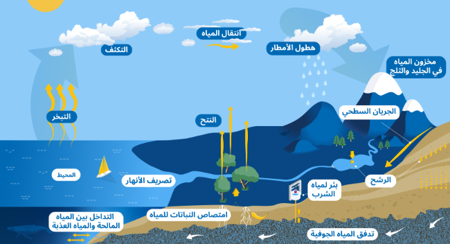يلعب الماء دورًا أساسيًا في الطبيعة ويُمكن تلخيص ذلك من خلال ما يأتي: