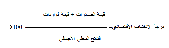 وهو احد المؤشرات لقياس التبعية الاقتصادية, من خلال أَهمية الصادرات والاستيرادات من الناتج المحلي الاجمالي، وأَحياناً لا يعني ارتفاعه دليل على التبعية الاقتصادية وإِنما يشير إِلى إمكانية تعرض اقتصاد الدولة إِلى الاختلال نتيجة لظروف تحيط بالتجارة الخارجية.