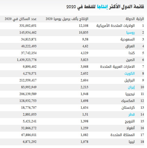 قائمة الدول الاكثر انتاجا للنفط عام 2020