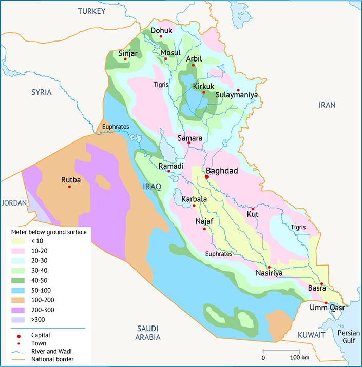 تتفاوت جودة المياه الجوفية في أنحاء البلاد، إذ توجد طبقات المياه الجوفية الأعلى إنتاجاً والأفضل جودة والتي يمكن الوصول إليها بسهولة في شمال شرقي البلاد, تمتاز هذه المنطقة بارتفاع مستوى هطول الأمطار، في حين أن تركيز إجمالي المواد الذائبة في المياه الجوفية منخفض جداً بشكلٍ عام, بينما تزداد ملوحة المياه الجوفية في المناطق الوسطى والمناطق ذات التضاريس المنخفضة, في المناطق القاحلة وشبه القاحلة مثل العراق.