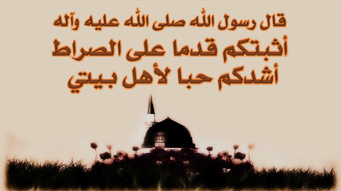 قال رسول الله ( صلى الله عليه وآله ) : ( أثبتُكُم قَدماً على الصراط أشدُّكُم حُباً لأهل بيتي ) .