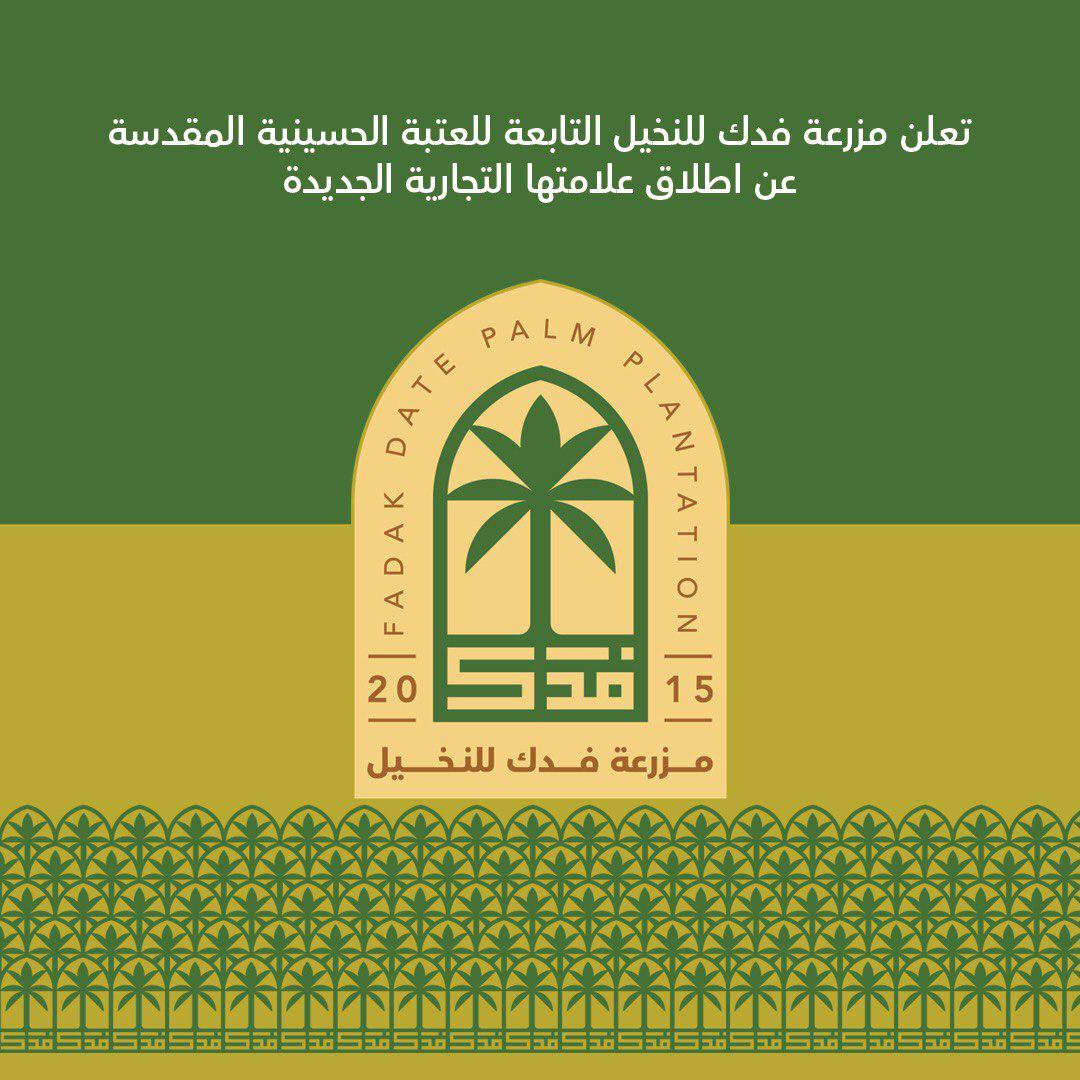منذ بداية العام الجاري 2021 والعتبة الحسينية المقدسة تطلق علامتها التجارية الجديدة لمزرعة فدك،كما تعد اكبر المشاريع المهمة للقطاع الخاص والاستراتيجية التي تعتبر ماركة تسويقية لتطلق هويتها البصرية كما تعد الانطلاقة الحقيقة لانتاج التمور والمنتجات الزراعية اذ اعتمدت تصميمًا أساسيًا على عدة جوانب وهي الايوان الذي يدل على العتبة الحسينية المقدسة كونه طرازاً معماري مقدساً والمعتمد في هيكل الروضة الحسينية ويحتوي على نخلة الذي يدل على مزرعة فدك