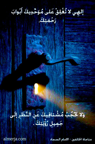إلهِي لا تُغْلِقْ عَلى مُوَحِّدِيكَ أَبْوابَ رَحْمَتِكَ، وَلا تَحْجُبْ مُشْتاقِيكَ عَنِ النَّظَرِ إلَى جَمِيلِ رُؤْيَتِكَ.