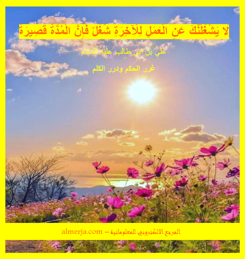 لَا يَشْغَلَنَّكَ عَنِ الْعَمَلِ لِلْآخِرَةِ شُغُلٌ فَإِنَّ الْمُدَّةَ قَصِيرَةٌ .