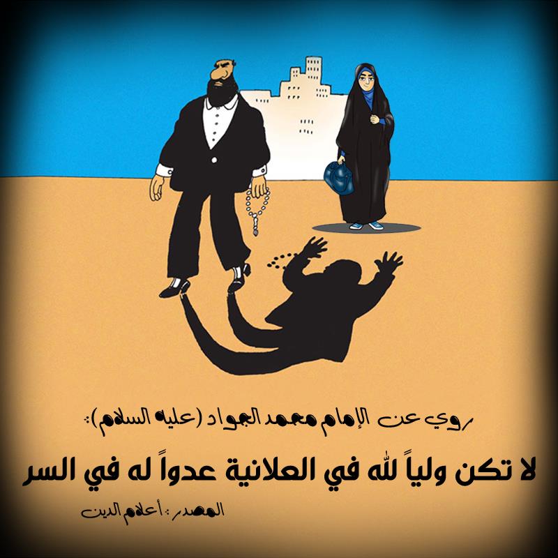 رُوِيَ عن الإمام محمد بن علي الجواد ( عليه السلام ) أنهُ قَالَ : لا تكن ولياً لله في العلانية ، عدواً له في السر .