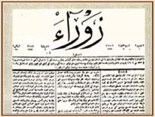 الزوراء : هي اول جريدة عراقية تأسست في 15 من حزيران سنة 1869 في عهد الوالي العثماني مدحت باشا , وكانت تطبع ب8 صفحات وبلغتين العربية والتركية .