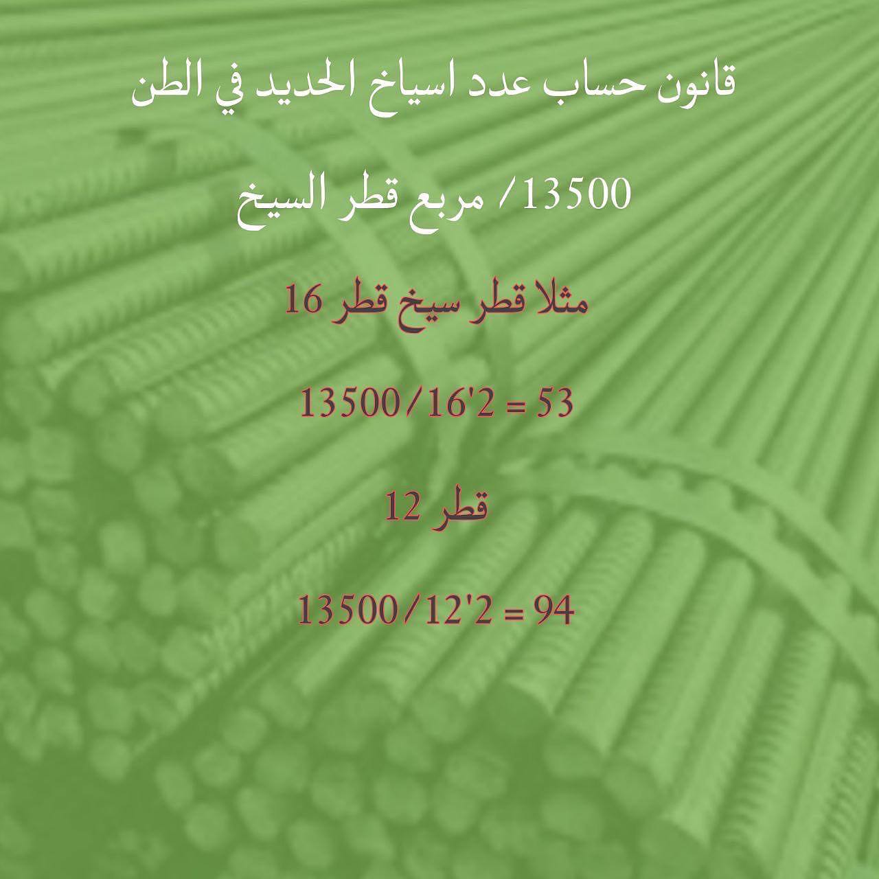 كيفية حساب عدد حديد التسليح في الطن الواحد وذلك بالاعتماد على قطر الشيش ....